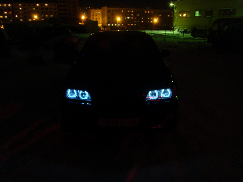 Вообщем хватит, приступим к статье. Ангельские глазки для вашей машины своими руками Своими руками за пару часов можно изготовить хорошо известные ангельские глазки BMW для практически любых фар с круглой оптикой. Для этого понадобится немного: прозрачные пластмассовые палочки (например, те которыми управляются жалюзи), резисторы на 220ом, светодиоды на 3,5 вольта, любая прочная банка диаметром, соответствующем диаметру фары, плоскогубцы и батарейка на 9 вольт. Формообразующая банка должна быть неподалеку. Вот уже что-то похожее на круг. Затем возьмите светодиод и резистор. Произведите сборку радиодеталей. Если нет паяльника, то можно все скрепить, как на фото. Проверяем с девятивольтовой батарейкой. Заматываем изолентой. Отпиливаем лишнее, сводим концы в идеальную окружность и гладко шлифуем торцы. Берем еще один светодиод и скрепляем их вместе. Делаем не очень глубокие насечки кухонным ножом, а затем пропиливаем более глубокие полоски. Собираем кольцо и скрепляем изолентой. В итоге получаем: Остается имплотировать в фару, и строить глазки всем) Спасибо! — Aleks_Vl