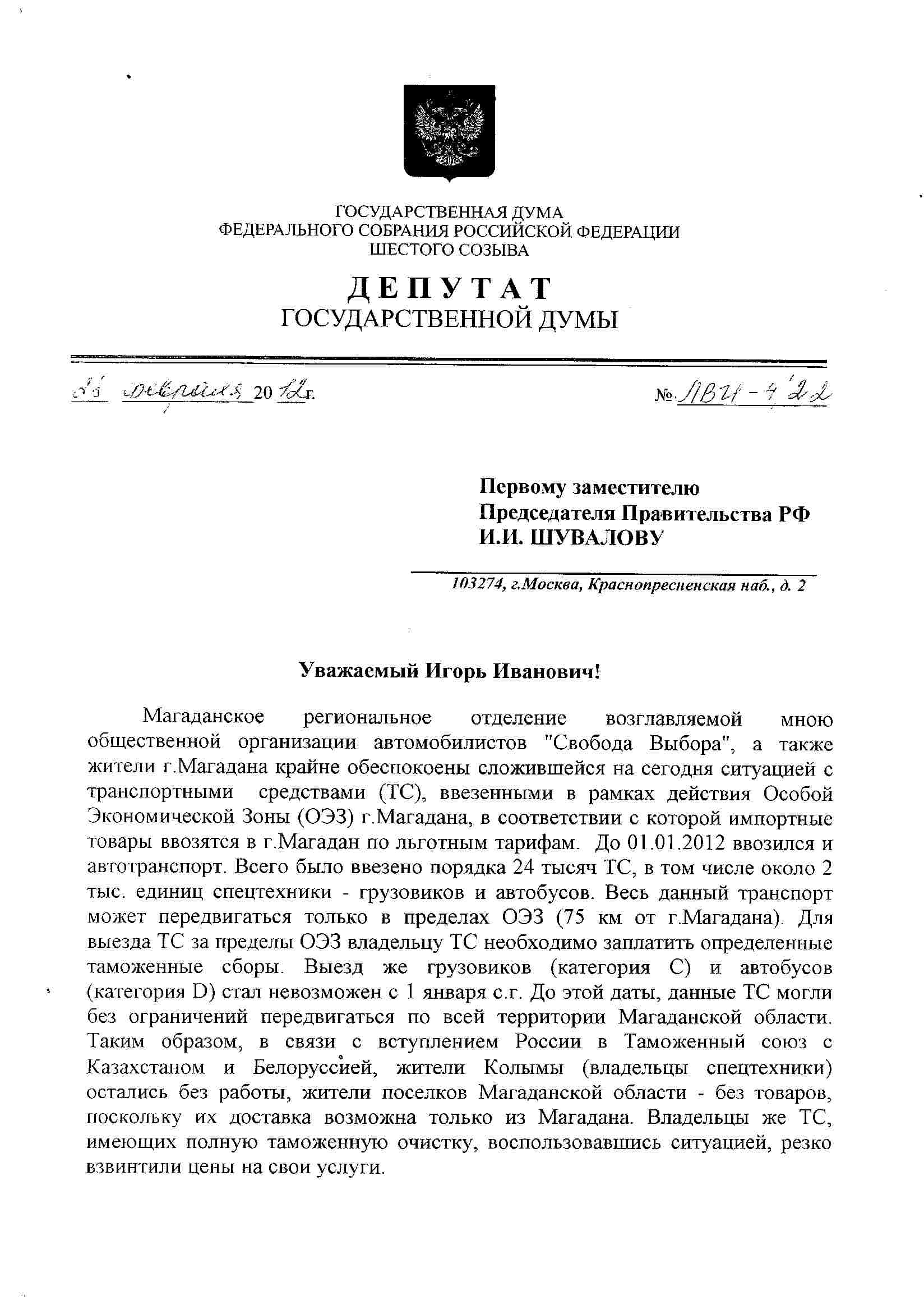 28 февраля, был сделан депутатский запрос Шувалову от "Свободы Выбора" Вячеславом Лысаковым. Вот сканы. Ждём результатов.
