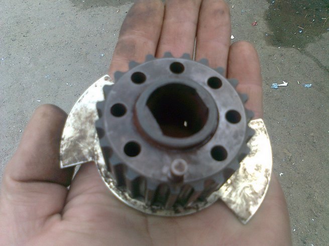 Люфт шестеренки на коленвале. ГРМ на один зуб позже из-за нее - познее зажигание. Заказал новую - из Йапонии. А пока эту расклинили - потеря - меньше пол-зуба. Идеально не получается. Да и шпонку слизало. Три миллиметра осталось - шкив зацепить. Зажигание электронное - автоматически старается подгонять. Иногда, в горку, типа вверх по Якутской, приходится делать quick down и удирать от преследователей, чтоб в >|<опу не бибикали - что тихо езжу - как бы прогуливаясь. Все же торопятся, один я катаюсь, мляхамуха!!!
