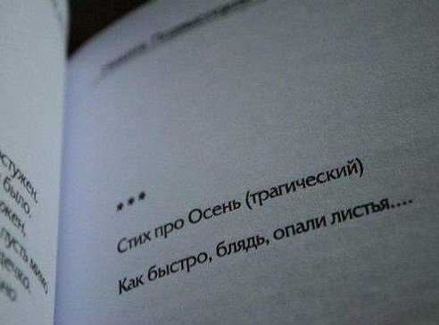 Три девицы под окном Жгли резину вечерком. — «Дрифтовать бы научиться, — Говорит одна девица, — Тапку в пол и вбок руля Не выходит ни*уя…». — «Форум почитай, девица, — Говорит её сестрица, — Мало ж Сильвию купить, Надо бы ещё и бабок влить…». — «Тихо бабы, че тут злиться, — Третья молвила девица, — Про один нюанс забыли, чтобы руки не из жопы были!» баш: вениамин лежит на рельсах немного здесь немного там а частью мчится по маршруту москва казань владивосток — А как же ты можешь разговаривать, если у тебя нет мозгов? — спросила Дороти. — Не знаю, — ответило Чучело, — но те, у кого нет мозгов, очень любят разговаривать. © Волшебник из страны Оз -------------------- 8-91Ч-0З1-5б-98