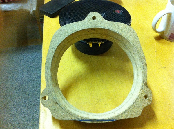 вот фото уже вырезанной задней панели, поставленный динамик, понятное дело что стоять еще 1 проставка что бы выровнять динамик...