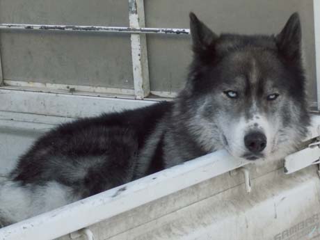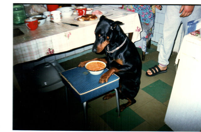Это к фотографии огромной (больше человека) собаке.