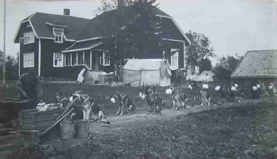 Очень умные пограничные овчарки пришли строем со своими мисками на обед.