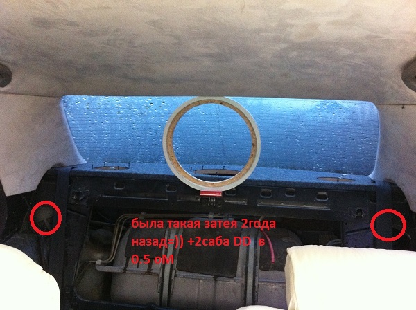 miki те отверстия для тыловой акустики, раньше была такая задумка что б с багажника две трубы вывести в салон но по бокам задних кресел. но. переболел давлением так как работа очень шумная и я решил удариться в качество=)) давануть кстати тоже можно=)))