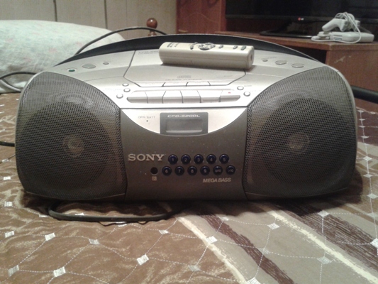 Скрепя сердце отдам за 2 кило зеленых яблок отличный магнитофон Сони, хороший звук, радио работает, кассета и диск не знаю, когда последний раз пользовались все работало. Из недостатков - не работают кнопки громкости на самом мафоне, зато есть пульт, на котором все фунциклирует.