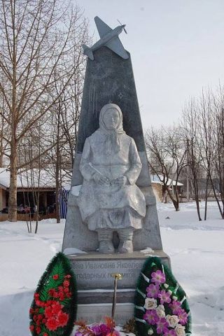 Это памятник Яковлевой Матрене Ивановне. Во время войны она продала все, что имела: дом, скотину, вещи и пришла в сельсовет с мешком денег со словами «Купите на эти деньги самолет. У меня сынки воюют, надо помочь». Самолет купили. Сыновья с войны не вернулись, ни один. А всю оставшуюся жизнь Матрена Ивановна прожила в домах односельчан по очереди. Всем было за честь, что она поживет в их доме. Памятник поставили на деньги односельчан.
