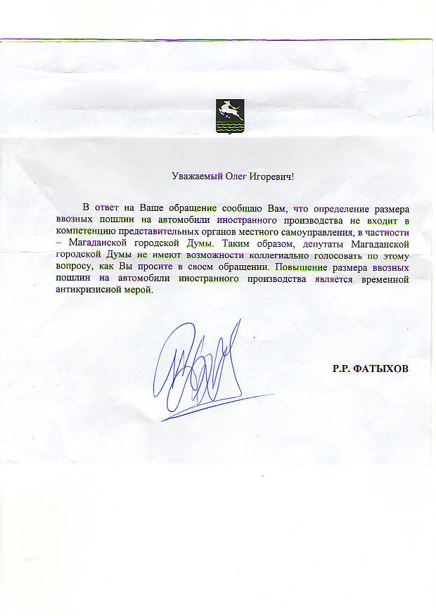 на прошлой акции отсылал протест на сайты медведева и путина,31декабря пришло правительственное письмо с отпиской, что моё обращение отправлено в таможенный комитет по подведомственности вопроса.Сегодня пришла отписка из Таможки.Сплошная вода,никакой конкретики.