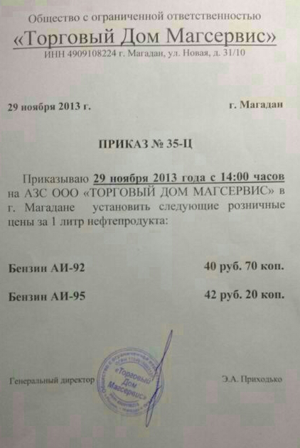 ну по приказу Магаданнефто именно такие цены. Когда проезжали видели что они продолжают там чето менять. Посмотрим какая цена будет вечером.