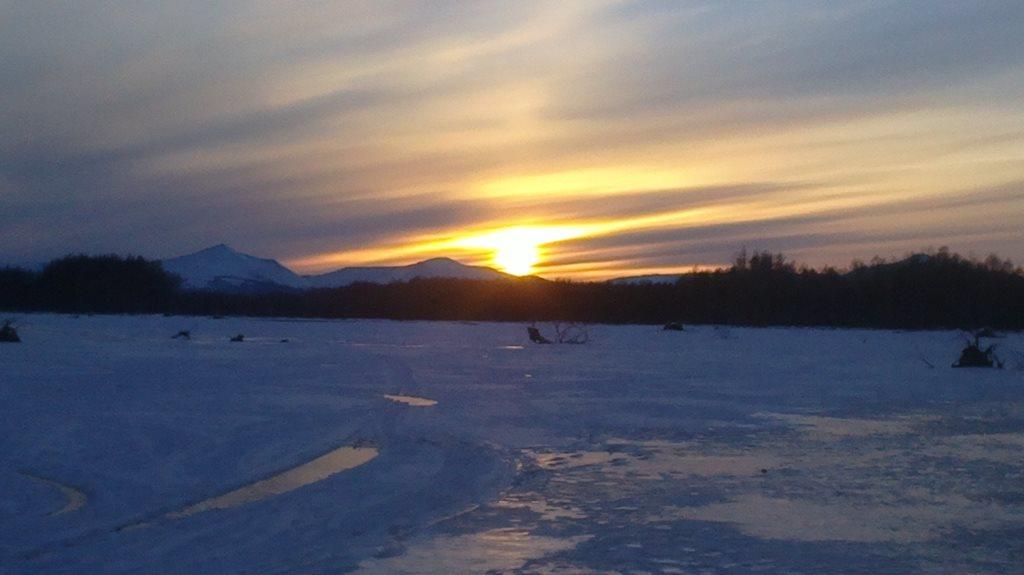 В субботу рванули до Ойры, Нива сразу зарылась. Решили не биться, а прокатится до Балаганного (кстати по льду на переправе легковые шуруют уже вовсю). На Тауйске тормазнули встречного Прадоса рыбы говорит на Балаганном нет. Развернулись и на Глухое, там пешком 5 минут, малоротка, не много но есть. На ужин надергали