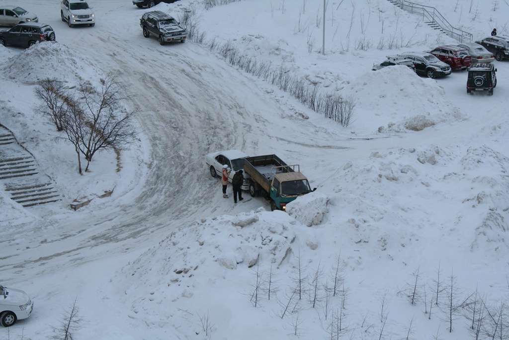 Все наверное знают спуск возле магазина "Виноград" бывшиый "Сувениры". Вчера в -25 резина держала на спуске, сегодня в -18 я просто катился по нему с повёрнутыми и заблокированными колёсами как корова на льду. Машины которые ехали снизу дали мне скатиться иначе была бы авария 100 %. НАКАРКАЛ?????????????? |