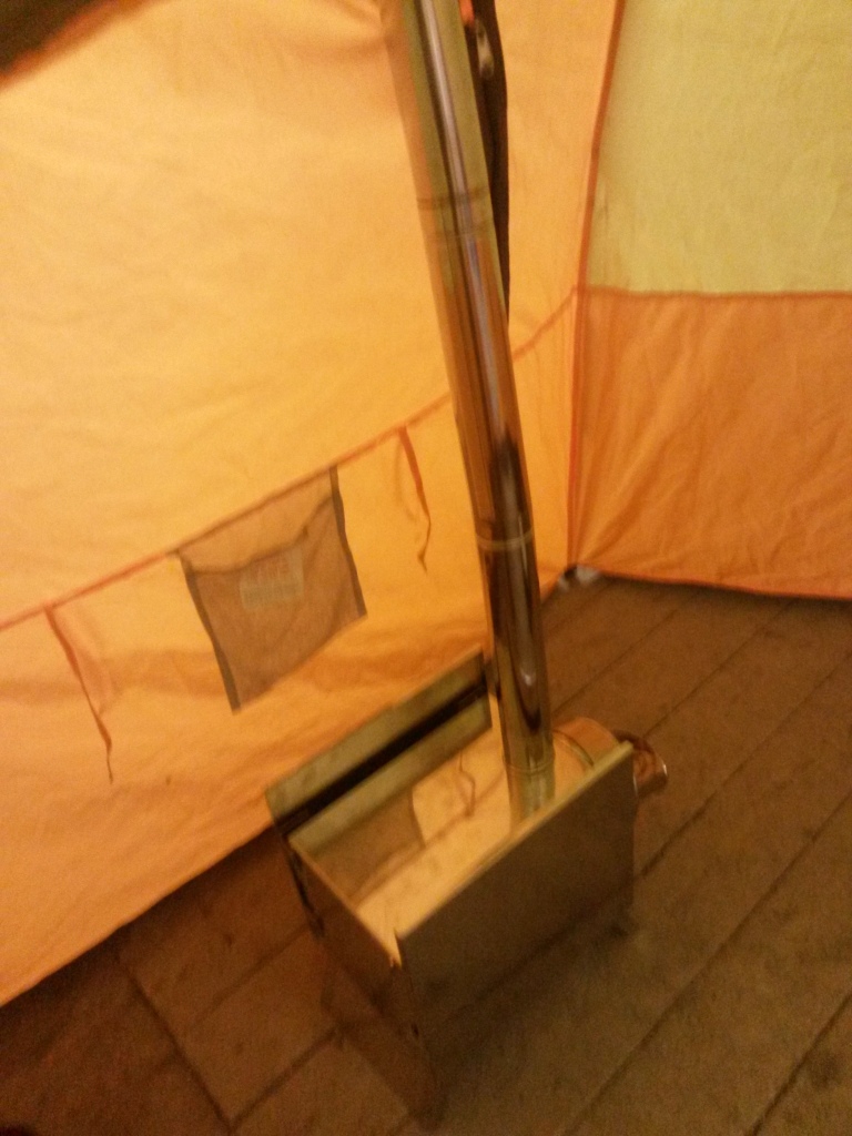 Может так называемый дожигатель и хорош , но такую печку надо долго топить , что б чайник скипятмть! , что бывает не маловажно! Это тоже уже проверенно, чтоб искра не жгла палатку должна быть высота трубы соответствующая, можно на верх трубы сколхозить икрагаситель .,это как правило конусная форма и ли плоская. Разделку из металла лучше обшить легким брезентом к которому пришиты(при клеены) липучки по размеру тех что установлены на палатке. Удобно снял , одел так как в палатке несколько технологических отверстий , то при желании можно менять и положение печи .