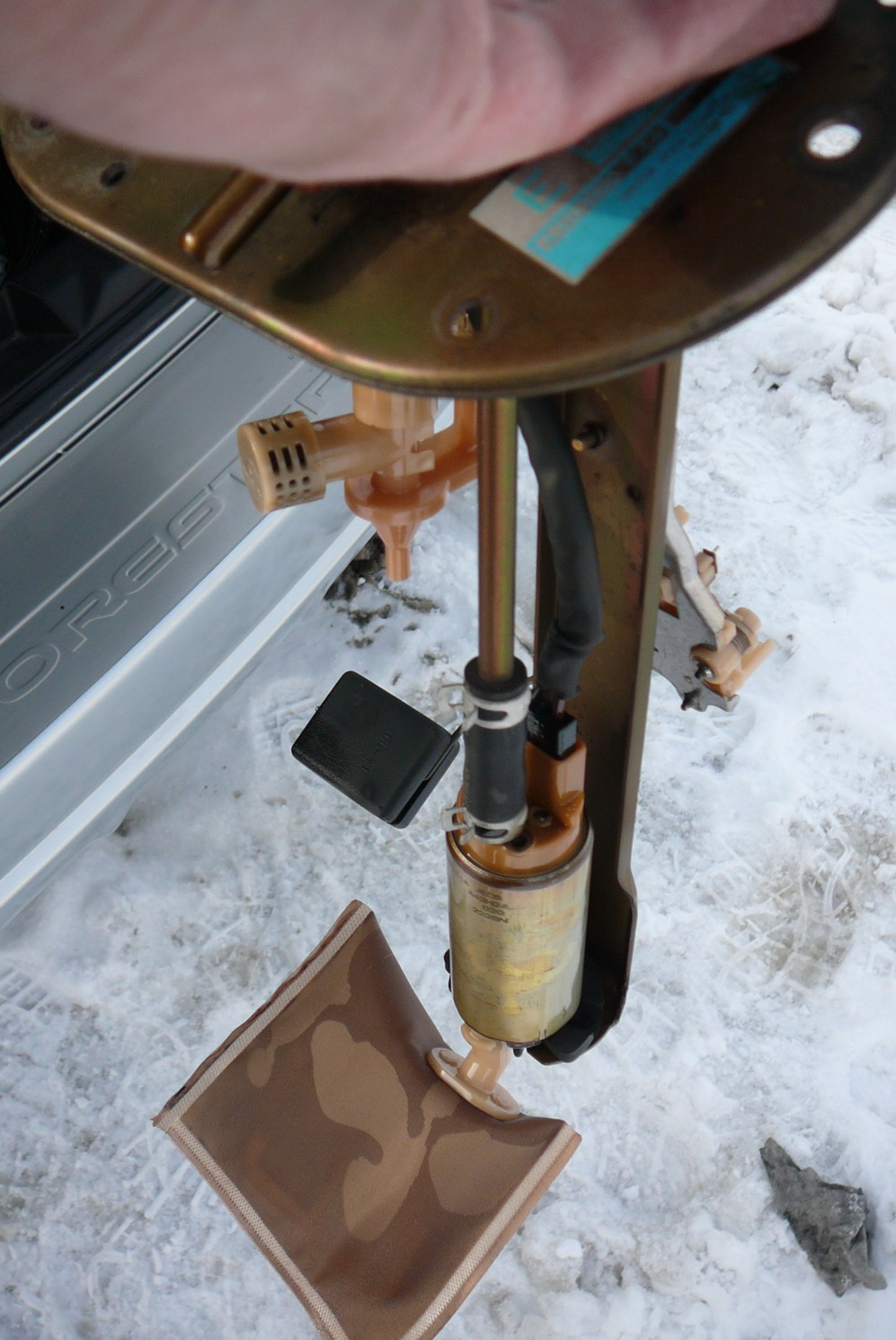 Февраль в Магадане удивительный, ещё и так совпало: выходной, плюсовая температурав, без ветра.... после обязательной программы на снегокате с горки с ребенком, вооружившись детелями Субару и не очень, пошел на фристайл... Расход сейчас 32л./100км — понятно что прогрев и малый ежедневный пробег сказывается, но… буду менять, как мне кажется, поизносившиеся элементы… Начал с замены топливного насоса, говорят ресурс его 100т.км — мой прослужил 135т.км так что меняем… и берем более производительный deatschwerks DW200 на 255л/ч В багажнике нужно разобрать совсем не много, добираемся до лючка, под которым жужжит топливный насос вытащил всю конструкцию наружу, заценил состояние сеточки, и сам бак изнутри, на удивление чисто дальше собираю новый насос, новая сеточка шланчик, фишки всё в комплекте Дальше топливный фильтр, с ним всё проще, он под капотом - снимаем шланги и одеваем на новый)) Из фильтра выливалась дрянь -------------------- обменяю 2-х комнатную квартиру в Магадане на Виллу на Северном Кипре!!!