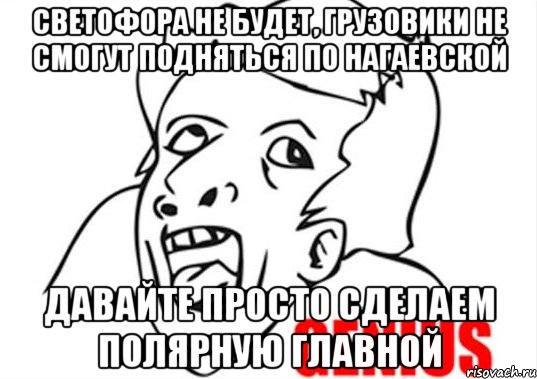 Светофорное регулирование упорядочивает и тормозит движение. Даже со светофором Нагаевская просто умрёт. Это если брать примеры с остольных перекрёстков где образуются пробки. Вас так послушать так не знаешь за что хвататься. значит как две три залетные машины тормозят весь поток с портовой это нормально, а как наоборот так все умрет и все погибнут. аварии там и так каждую неделю почти, может так и будет, разве что виноваты теперь будут другие. -------------------- "В конечном итоге в гонках выигрывает не тот, кто быстрее разгоняется, а тот, кто позже начинает тормозить" (Айртон Сенна)
