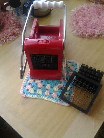 Приспособление для нарезания картофеля ( не знаю как правильно данная вещь называется), пользовалась не много раз, не прижилась на моей кухне, мне прощеи быстрее ножом. Режит брусочками.