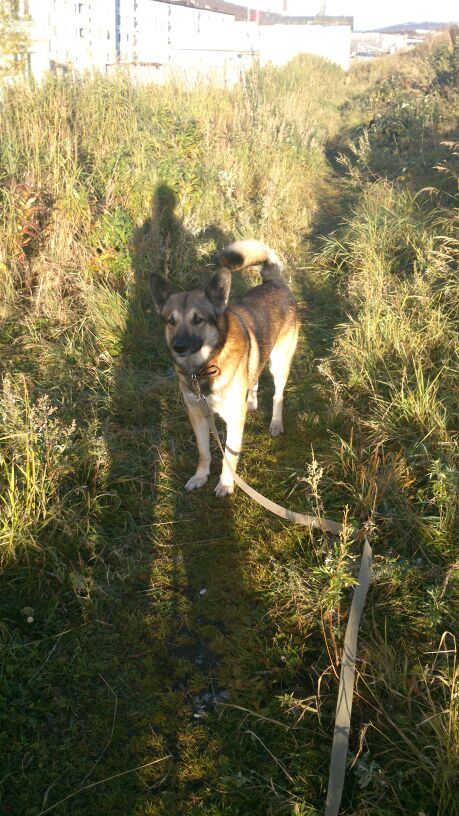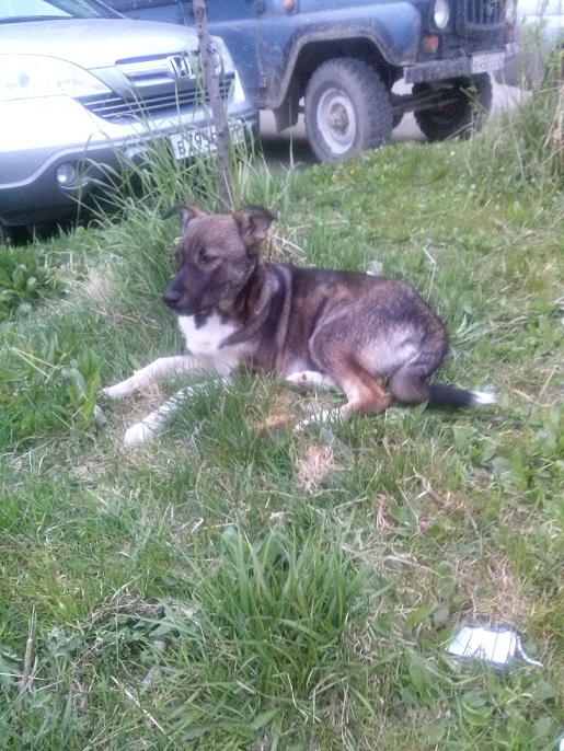 На объездной (недалеко от заправки) периодически сидит собака, дворняга, кобель, с кожаным коричневым ошейником и грустно смотрит на проезжающие авто. Близко к людям не подходит, но от еды не отказывается. Может потерял кто?