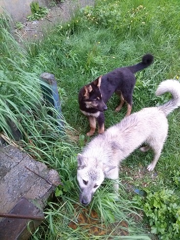 на Попова 7 и 5 бегают два щенка -один был в ошейнике, уже кто-то снял ошейник, похож на овчарку с лайкой черный с подпалинами, около 4 месяцев мальчик