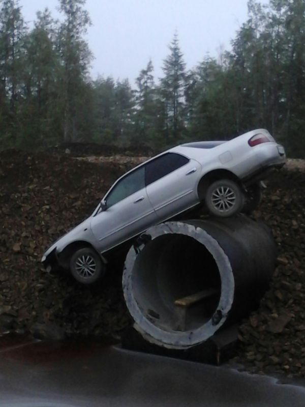 Этот водятел меня обогнал и еще джипика прям на повороте на Маску. Ну а дальше кувырки пошли. Хотели вытаскивать его, но вылез сам через дыру в лобовом! Скорость хорошая была. Хорошо встречная далеко была!