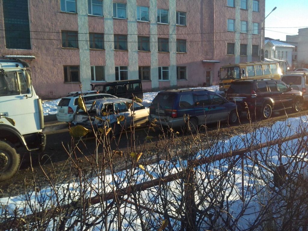 На якутской возле пенсионного развалились, Crv и vista ardeo,автомобили пострадали нормально! Чуть выше на якутская-гагарина стоят Уаз и HRV !