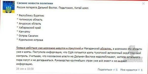 Думать - вредно.... Вот какого типа зачастую возникают вопросы, при просмотре новостных программ по центральным ТВ-каналам....: - В Молдавии идут протестные выступления пророссийской оппозиции... Почему на молдавском митинге. в Кишиневе, молдавские демонстранты несут транспаранты..... на русском языке (причем ТОЛЬКО на русском языке)? интересно, а на каком языке должна протестовать ПРОРОССИЙСКАЯ оппозиция? -------------------- |