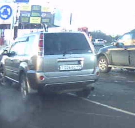 Патруль или сафарь белого цвета с черными дефендерами с номерами 624 вроде или 629, негодяй, мало того, что вылетел со всторостепенной не пропустив по транспортной после моста, там вообще запрещено поварачивать на встречную, так еще и весь перед машины зафаршмачил шлаком из под колес, только сегодня машину мыли