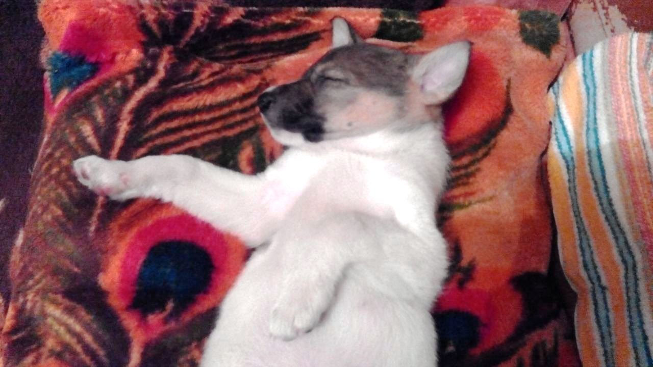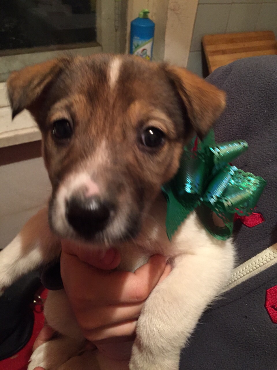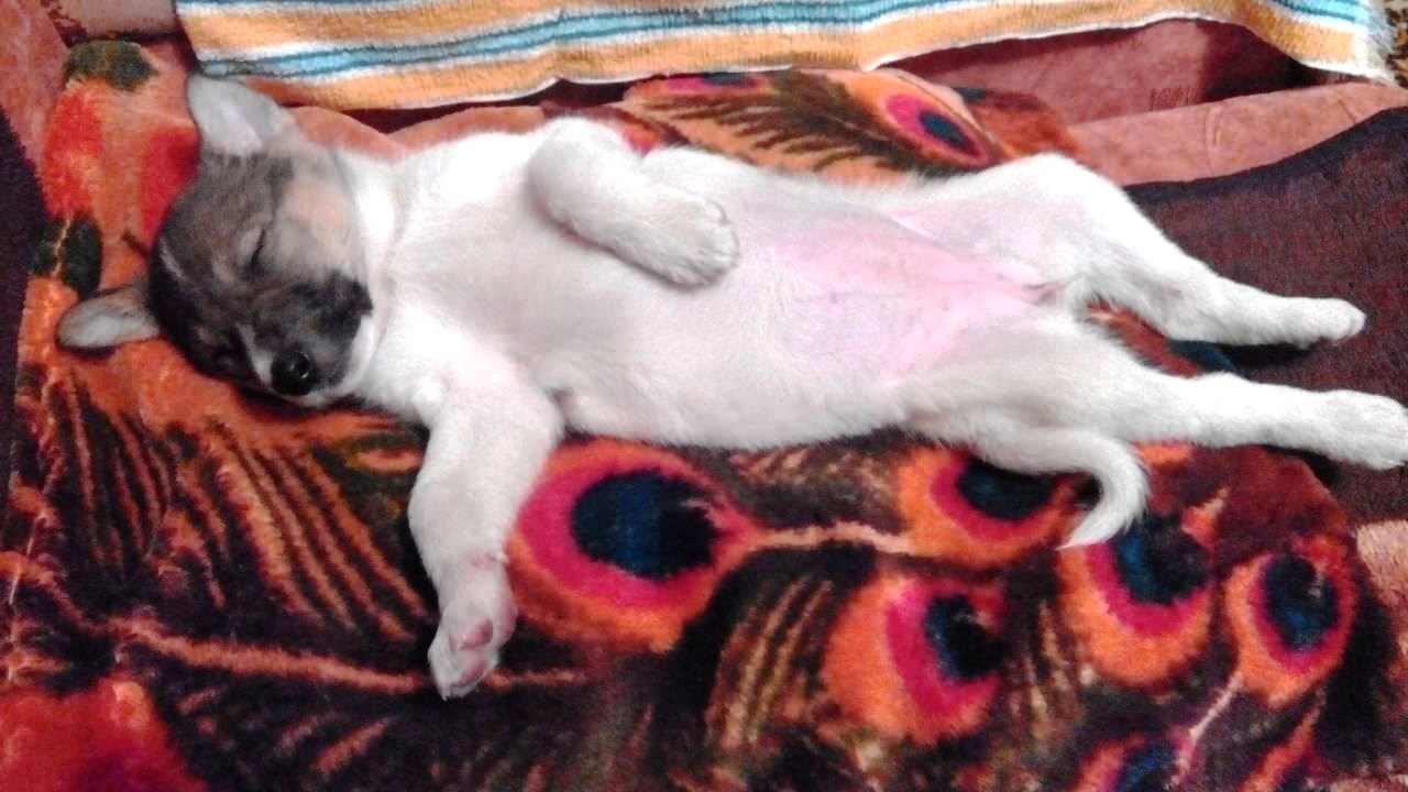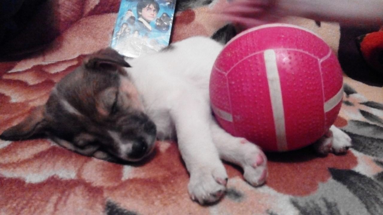 предыстория: Какие то добрые люди, подбросили щена в мой подъезд, но деваха не растерялась, и когда я закрывала двери — прошмыгнула в квартиру)А у меня два взрослых кобеля — так что дитю здесь не место) Найда (наёденыш же) замечательная собака! розовое пузо, розовые пятки, еще пахнет щеночком)) Любит гонять в мяч, дала ей специальную косточку для собак — зубы точит только о нее — так что еще и не грызлик значит)в общем — чудесатая собака) з.ы. фото взрослых собак — это Джек Расселы) На них найдёна и будет похожа)) |