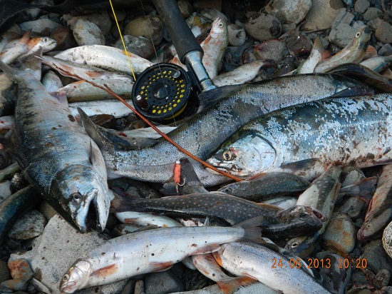 Здраствуйте .Тихоокеанские мушки.часто можно почитать советы о том, что поймайте первую рыбу. выпотрошите и посмотрите козявки в желудке и сделайте мушку похожую на этих козявок и ловите на нее. может где это и помогает но лично я придерживаюсь теории что в коробочке должно быть минимальное количество мух( лучше всего одна) и вот они и должны ловить при любых условиях. методом практических проб и ошибок я представлю вам свои наработки. давайте вернемся к потрошению. если выпотрошить горбушу и кижуча то внутри 100 % будет красная икра, если выпотрошить гольца то тоже вероятно будет эта же икра, если икры в гольце нет то это не значит что голец ее есть не будет на халяву( как например если вы временно питаетесь дошираком вдруг откажитесь от хорошего обеда в хорошем ресторане). все эти имитации бокоплавов и ручейников для гольца это как вам даром предложить доширак и обед в ресторане. как правило и лосось и голец всю жизнь по возможности питаются креветкой в море или икрой в реке.. и икра и креветка светятся в ультрафиалете и все ловчие наживы на лосося и гольца тоже светятся. как пример- тасманы розовые светятся, воблеры ( хорошие) светятся, розовые кальмарчики на горбушу- светятся Блесна чинук и крусейдер( новые) светятся, Буллеры- светятся мухи на лосося тоже должны светится особенно на лосося и это не мое изобретение а общемировой тренд.теперь о крючках и мухах. если все рыбы у нас клюют на длинные и зкие блесна и воблеры то вероятно и мушки на эти же рыбы могут быть размеров и форм ловчих блесен и воблеров а не микроскопические имитации мушек и бокоплавов. так как на длинном крючке можно связать длинную муху пропорций блесны тасманский дьявол и как минимумум крупные длинные крючки облегчают снимание рыбы и поэтому их так любят дальневосточники. такие крючки называются - стримерные. а мушки на них стримеры, которые такие большие что многие " именитые нахлыстовики" относят их к разряду блесен а не мух так что можно тут дальше и не читать если вы консерватор нахлыста вообще. но если вам нужен хороший практический результат а не Бла- бла можете читать дальше.