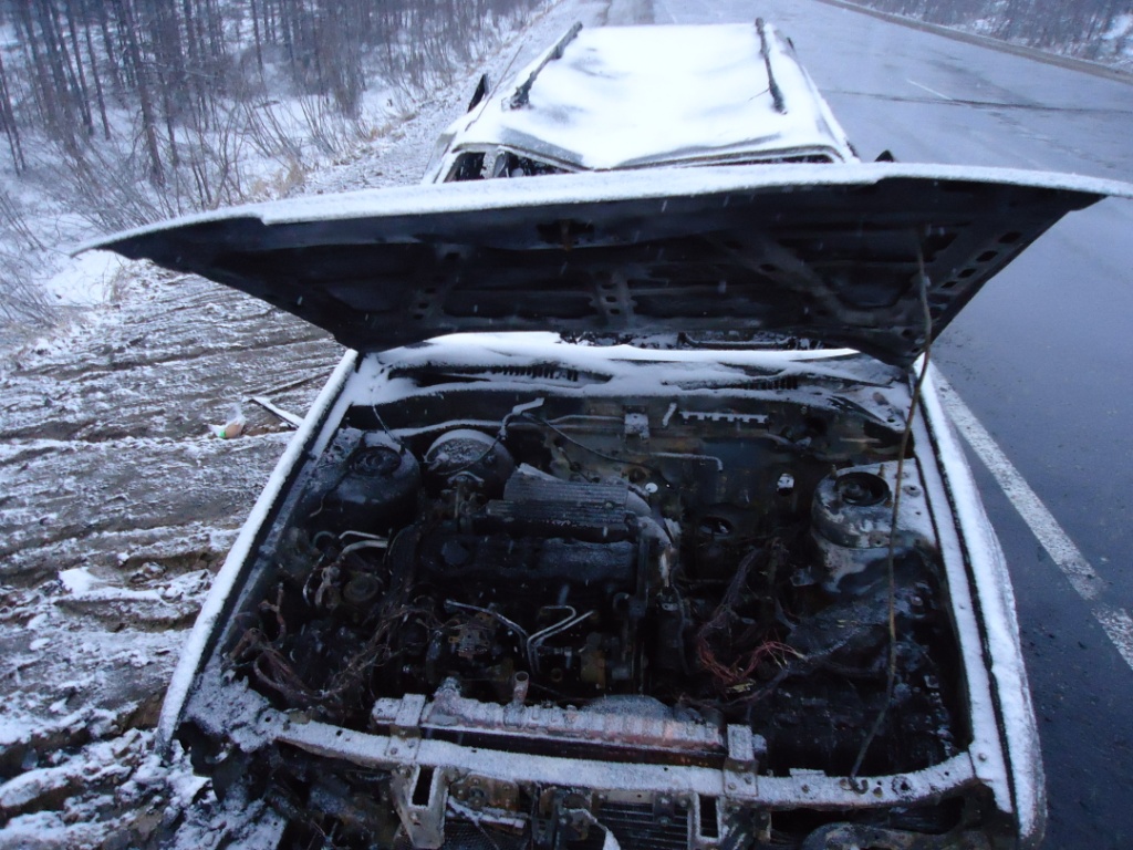 Сегодня ехал с Сокола. Где-то на 35 км. (между Уптаром и Снежным). Форд Тэлстар сгорел по пути из города. Отчего и когда - не знаю.