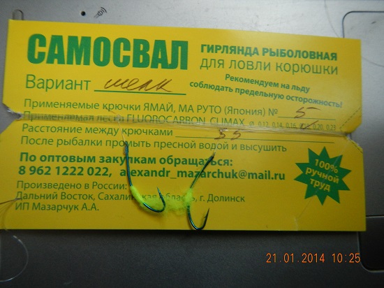 Значит про снасти для рыбалки и их изготовление на Российском ДВ. для начало нужны хорошие комплектующие, нужные серебрянные крючки, яркие ниточки,трубки кислотного цвета, с эффектом UV-GLOW. почти все магазины РФ покупают на нескольких московских и питерских оптовых фирмах и вынуждены брать то что есть. поэтому почти все у всех одинаково. К тому же все закупки на этих фирмах оптовиках рассчитаны для ловли рыбы в Европе типа плотва- окунь- щука и для лова хариуса и тем более корюшки не расчитаны вовсе. к тому же все завозят годами одно и тоже что покупают. лично я изменил это правило и потребовал полный каталоги фирм. Из удивительного например американская фирма Вапси имеет 40 000 позиций а Текстрим имеет 30 000 позиций а Маруто 25000 вариантов крючков и кстати все фириы готовы вносить изменять и делать новое и нужное при условии 100% пред оплаты, от 20 000 евро и сроках выполнения заказа более года .тогда можно получить нужное и увеличить уловистость мущек по лососю и гольцу раз в десять а по корюшке и поболя. То же самое и с Японцами, большинство их гирлянд не для лова корюшки и не для лова из под льда. и они тоже согласны производить нужные крючки- самосвалы или там серебрянные и поставить нужный мобик и кожу в нужном цвете если им оплатят все заранее , подождут более года выполнение заказа и количество крючков одного вида будет не менее 100 000 шт. вот некоторые из того что я уже наделал и получил и что произвело очень положительный эффект по корюшке. - серебрянные крючки на корюшку с длинным цевьем от Маруто.- Атон синий УФ от Текстрим-- обьемные Шелка УФ от текстрим из италии