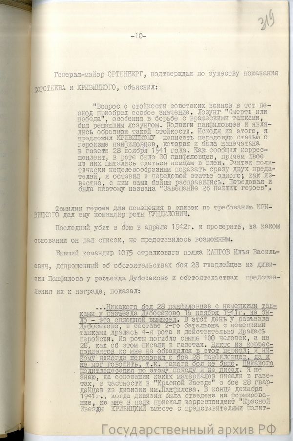 А для меня это пример лживой и преступной пропаганды, засирания мозгов, под прикрытием которого бездарно гнобились сотни тысяч и миллионы солдат Смотрите внимательно. Он начинает с вброса тезиса: "Ваши панфиловцы - говно". Именно это он и сказал, не меньше. Далее он "обосновывает" тем, что боевой эпизод был записан немного не так. А что не так? Может, дивизия Панфилова не обороняла Москву? Может, она не отразила немецких атак? Затем называет описание подвига "преступной и лживой пропагандой". От так от! Защита Родины, самопожертвование, выполнение воиского долга - это ложь. Для либерало-фашиста ничего такого не было. Призывы к защите Родины - преступная пропаганда. И мечет новый кусок говна в Россию про "бездарно гнобились миллионы". Это обычная ложь, которой нет доказательств, но он кидает ее вдогонку. Потом он скажет, что надо было сдать Ленинград. И вообще, надо было сразу сдаваться, пили бы баварское. Всё это либерало-фашисты уже говорили. И этот повторит. Спасибо! — Jumanji