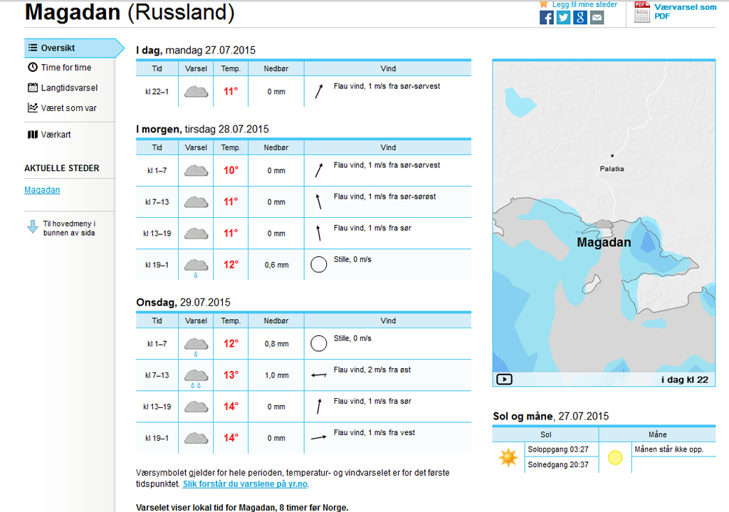Вот чешский сайт погоды, очень подробно и достаточно точно. Вчера rp5 на сегодня дожди показывал, а этот прекращение к 10 часам и вознобновление к ночи. Сейчас уже обещанный к ночи дождь сместился на вечер. Не подводил, рекомендую. Кстати, ссылка была изначально взята на сайте Солнечного Магадана.
