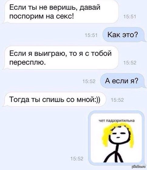 Цитата(кузинатра @ 7.10.2015, 20:17) ссылка доступна только зарегистрированным Забыл упомянуть умышленный ввод в заблуждение. Когда девушка знает что не права, но до последнего спорит не заморачиваясь логикой. Ээээ этож обычное поведение для женщин. А вот заморачиваться мужской логикой - это крайне необычно для женщин и попах... подозрительно. Женская логика относится к мужской логике очень легко и не заморочено. Как в анекдоте ...: Устав: пункт № 1: Сержант всегда прав! пункт № 2: Если всё же, вдруг, ... сержант не прав, то - смотри пункт № 1. P.S. бороться мужской логикой с женщиной - хуже, чем Дон Кихотовским копьём с мельницами. Женщины гораздо более успешные и умелые манипулянты, нежели мужчины - ведь они живут и апеллируют многовариативными эмоциями и чувствами, а не прямолинейной и единственно-возможной логикой у мужчин. Это сродни борьбе камня и воды ... Сообщение отредактировал Shiko - 7.10.2015, 22:05 -------------------- «Ад и рай – в небесах», - утверждают ханжи.