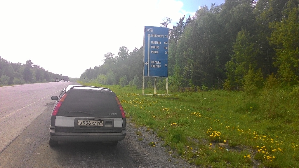 Пройдено 861 км. Всего — 6935 км. Ежеутренние проверки Пиво «Томское» - дерьмо. У ужина путешественника — 1.5 «Томского» и пачки чипсов — отвратительный пост-эффект. Сегодня нужно любой кровью попасть в Кемерово по двум причинам. Первая — условно-бесплатное жилье, остановлюсь отдохнуть на день у одноклассницы. Вторая — ТО автомобиля, пробег в шесть килокилометров от старта обязывает меня поменять масло в двигателе. В этот день я первый раз заблудился. На выезде из Канска было не слишком очевидное для меня кольцевое движение. Никаких указателей не было и я по привычке проехал прямо. Навигатором, по какой-то неизвестной мне причине, я пренебрег. Еду вперед, дорогая отличная, но тут я начал обращать внимание на километровые столбики, а на них 39, 40, 41, и все на красном фоне. Учитывая, что трасса М-53 началась в Иркутске, на них должно было быть не меньше восьмиста. Глянул в навигатор, а оказалось я поехал куда-то на север мимо федеральной трассы. Хорошо, что вовремя обратил внимание. Пришлось возвращаться, 100 километров пройдено впустую. Чтобы было понятно как такое вышло, ниже небольшая картинка К половине первого дня я проезжал Красноярск по огромной объездной дороге. Дорога настолько объездная, что я самого города даже мельком не увидел. За Красноярском знаки перестали согласовываться друг с другом и расстояние по ним стало сложно определять. Вижу знак «Кемерово - 600 км». Проезжаю километр — осталось уже 500. Проезжаю еще километр — опять 600. После такого выноса мозга расстояние стал оценивать по навигатору, он пока еще ни разу не наврал. Через какое-то время у меня случились проблемы с машиной. По достижении скорости в 100-110 кмч машину начинало нехило трясти из стороны в сторону. Ощущения были такие как будто сидишь в виброкресле. И если сидя в виброкресле ты должен расслабиться, то тут было ровно наоборот — я нехило напрягся. За помощь выражаю огромную благодарность землякам, обитающим в путешественнической группе в WhatsApp. Предположений было масса, начиная неправильно помытой машиной и заканчивая отваливающимся карданом. К счастью, никакой кардан не отваливался. Оказалось, что мойка автомобиля действительно была причем. Пока я ехал по мокрым якутским дорогам вся грязь с нее налипала изнутри на диски и стала как бетон. На мойке в Иркутске часть этой грязи сбили, но много осталось. В итоге дисбаланс в колесах. Пришлось потратить время, снять каждое колесо и баллонным ключом счищать остатки трассы «Лена» с дисков. Возле Мариинска стоит забавная ГИБДДшная обманка для водителей. В девятом часу вечера, чуть позже чем я планировал из-за приключений в Канске, я приехал в Кемерово. Это второй опыт вождения в большом городе, Кемерово - город-полумиллионник. Так же как и в Иркутске для поиска места назначения пользовался навигатором, посматривал на дорожные знаки, чтобы ничего не нарушать. Немного мешал дождь, не все было видно в сумерки. Особенно не было видно ям, коих в городе хватает. Но вообще до Октябрьского проспекта я доехал без особых сложностей, благо, что не центр города. Заправки: 1044км А/Д Байкал (24rus) 35 литров по 30,50/л = 1067,50р 792км А/Д Байкал (24rus) 25,97 литров по 28,60/л = 742,74р 344км А/Д Байкал (42rus) 20 литров по 29,50/л = 590р Проживание: Условно-бесплатное, купил две бутылки вина Итого (Топливо): 22004,50р Общее итого: 30304,50р День 10. 3 июня 2015. День в Кемерово. Район Первая по