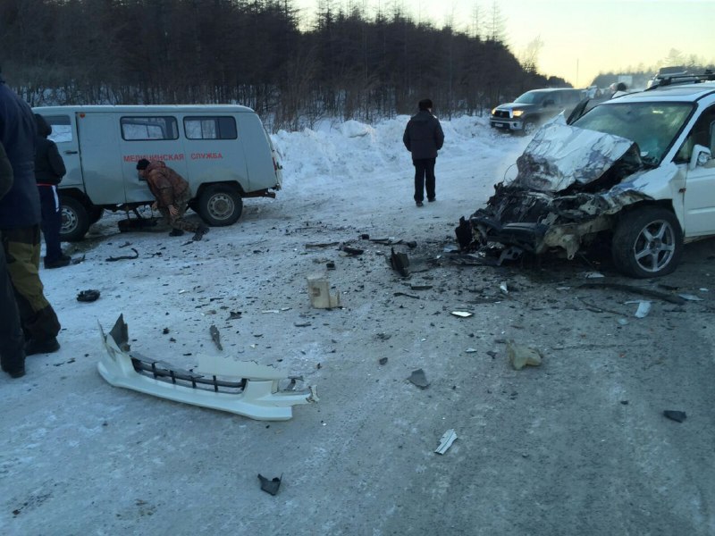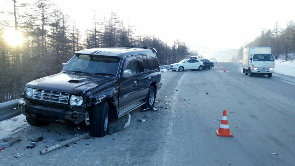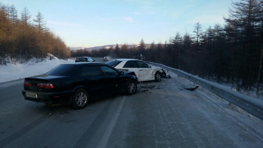 Дукча "Сегодня около 09.15 утра в районе поселка Дукча водитель автомобиля Toyota Mark II не справился с управлением, выехал на полосу, предназначенную для встречного движения, где столкнулся с автомобилем Mitsubishi Pajero с последующем столкновением с Honda Torneo, – рассказал старший инспектор ОГИБДД УМВД России по Магаданской области подполковник полиции Ян Протодьяконов. – В результате ДТП водитель автомобиля Toyota Mark II получил телесные повреждения".