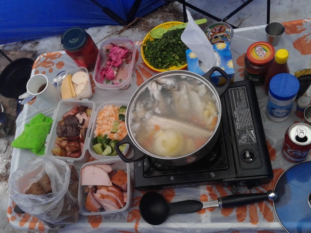 Съездили на два дня. Вчера вернулись Погода супер - весна полным ходом. Рыбы не нашли. Поймали мало. Я 48 шт. Но не расстроились Жарили шашлыки, варили уху. Смотрели кино в палатке. В общем отдохнули отлично, а это самое главное в поездке! Обратно рюхнулись в наледь -------------------- |