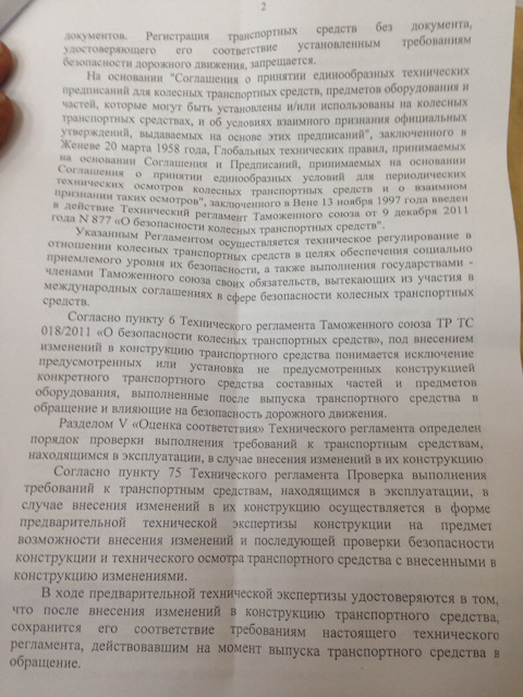 а вообще для установления факта изменении конструкции на место вызывается техспециалист, который их фиксирует и составляет заключение, которое и будет потом являться документом, подтверждающим внесение изменений в конструкцию. и это же заключение будет являться основанием для вынесения предписания об устранении нарушений, и последующего аннулирования регистрации, в случае неисполнения требований. поэтому, для того чтоб 500р отбить и инспекторов подраконить - можно и в суд обратиться, вероятность выигрыша 100%-ная практически. однако данный успех может обернуться тем, что ГИБДД возьмется всерьез потом за истребление внедорожников. -------------------- 8 914 860 93 (99)