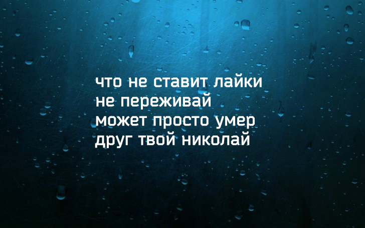 рухнули надежды просраны мечты виноваты оба ты и снова ты * миром неизменно правят смерть и тлен лишь одно нетленно полиэтилен * сутки беззаботно я лежу в пыли антидепрессанты очень помогли * если ваша крыша едет день за днём значит тараканы снова за рулём * чтоб не раздавило грузом серых дней либо выпей водки либо водку пей * за спиной тащу я ранец с букварём вот и всё накрылось лето сентябрём * всех достала осень в том числе меня потому что осень вот уже полдня * катя в инстаграме оля в твитере я в новосибирске в толстом свитере * наступая в лужу знай что впереди будет только хуже а теперь иди * осень принц не едет холодно к тому ж я неотразима ни в одной из луж * день в сети без лайков ощущенье что шла родной деревней не кивнул никто * а у нас погодка прям по питеру выйду на балкончик слёзки вытеру * да ищу работу девятнадцать лет это же не повод разводиться свет * я почистил карму выхожу в астрал но пришлось вернуться кот опять насрал * раз собрался выпить пьянствуй до конца до потери пульса денег и лица * школьники в печали у студентов грусть только я весёлый на работу прусь * я рисую осень грудью на окне потому что очень одиноко мне * просранные годы темнота и мрак вот итог спектакля под названьем брак * я не улыбаюсь потому что мне стыдно быть счастливым одному в стране * выйду ночью в поле я вдвоём с конём так как не умею ездить я на нём * слышен писк и нервно вьются провода это штекерёныш выпал из гнезда * смел умен и весел сексуально резв жаль что не бывает так когда я трезв * ты забей мне осень журавлей косяк я кота поглажу и налью коньяк * тонкими ломтями тело гошино на него с балкона арфа сброшена * делай то что должен тяжко не вздыхай вон шагают свиньи бисер доставай * не помогут листья подорожника после встречи тела с внедорожником * в октябре все птицы на юга летят кроме двух тушёных в яблоках утят -------------------- Без запретов и следов,