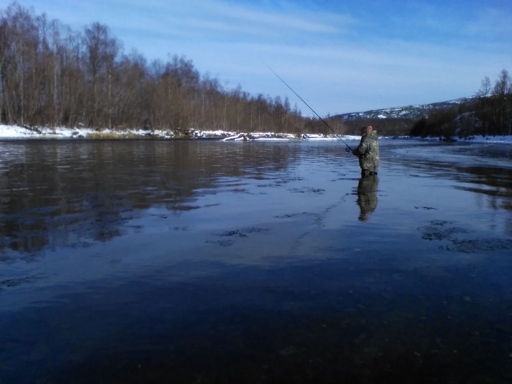 Ездили на Хасын, за Сплавную. С утра - почти сплошная шуга, леска обмерзала на 3м забросе. В 10-40 выглянуло солнышко, чуть потеплело, шуга прорядилась, а потом сменилась льдинами. Поклевывать стало почаще - поймали на двоих 10шт некрупной мальмы (из них 2 серебрянки, 2 "генерала") и одного хариуса на полкило. Третий товарищ обнулился и искупался, чем определил окончание рыбалки в 15-30. Двое подъехавших к часу, до нашего отъезда нулились на противоположном берегу. |