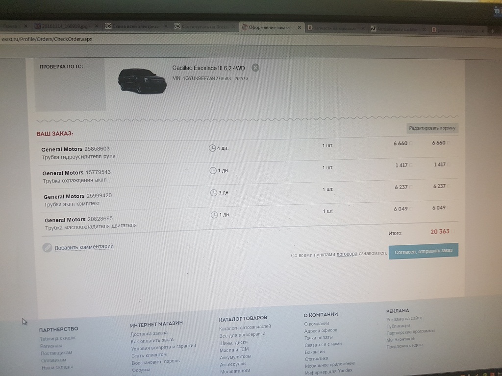 Чего то я все же не понимаю. ...... "Если хотите, то я найду, закажу, плюс моя наценка в 20% плюс транспортные.... И называет цифру в 55 тысяч наших русских рублей.... А фигушки! Не дам! Это мой хлеб!"... Считаю нужным проинформировать честной народ: минут 40-45 потраченного времени (не мной). Названия и артикулы шлангов найдены и обозначены (плюс попутно выявлены еще два вопроса, которые вскоре потребуют внимания). За это "с трудом" заплатила 1 тысячу рублей (ну зачем, я же ничего не сделал). Потом потрачено еще минут 45 времени (уже моего) Ну и для наглядности: Справедливости ради, сюда нужно еще добавить доставку. В общем, я ....бледнею, дорогая редакция!!! Сообщение отредактировал НАТКА - 14.11.2016, 23:59 -------------------- Не бывает некрасивых марсианок, бывает мало мутагенного урана.