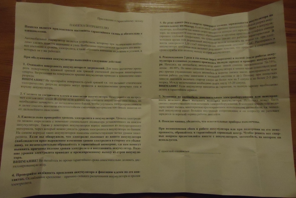 Цитата(rusinchic @ 5.1.2017, 6:49) ссылка доступна только зарегистрированным Хотите ездить без проблем ставьте максимально большей мощности, какой влезет такой и ставьте. По каталогу оригинальных запчастей на мою машину идут следующие аккумуляторы - 34В19L ("GS Yuasa"- 40 А/ч, 330 А...) - для районов с тёплым климатом, или 46B24L ("Furukawa Battery"- 45 А/ч, 330 А...) - для районов с холодным климатом. Даже 55-ка больше 45-ки почти на 25 %, спрашивается - какой смысл ставить больше ? Я считаю что он не будет хорошо заряжаться (учитывая что автономный подогрев хорошо кушает, а поездки как правило короткие), что тоже нехорошо. Вчера выбрал после долгого штудирования интернета, а сегодня купил: Furukawa Battery FB 9000 - 70B24L, 55 А/ч, 520 А, размеры идентичные 46B24L. Предназначен для районов с суровым и холодным климатом, а также для автомобилей с большим количеством электронных систем и дополнительного оборудования (в том числе автономного подогрева). Ну и чисто японский, да и производитель автомобиля рекомендует указанную фирму. Снял старый, поставил новый - пару часиков поездил чтоб подбить его. Пока всё отлично - машина по другому стала работать (на 75-ке какие то провалы в работе генератора на холостых оборотах периодически бывали). Заводить после работы автономного подогрева буду завтра утром, тогда частично станет ясно - каков он. Цена во всех магазинах города на него одинаковая - 9 800 рублей, я приобрёл его за 8 100 рублей (новый, свежий, в магазине), только в другом населённом пункте Магаданской области |