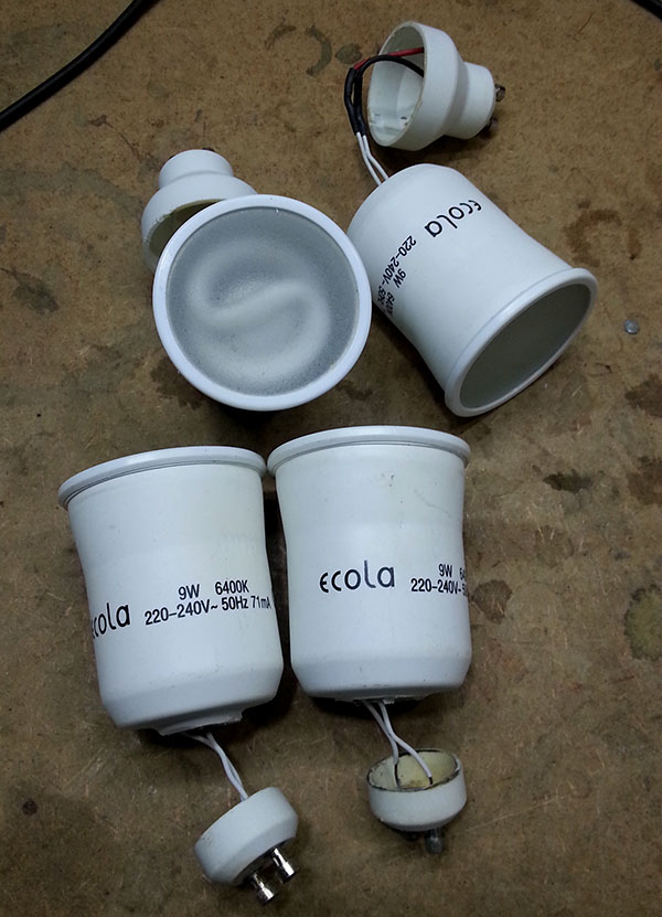 1. Энергосберегающие лампы Экола, цоколь GU10, 6400К, 220В, 9Ватт - 11 штук, точно работали 10 штук. Сообщение отредактировал hronik - 2.3.2017, 23:38 -------------------- Диагностика двигателя и всех электронных систем легковых авто.
