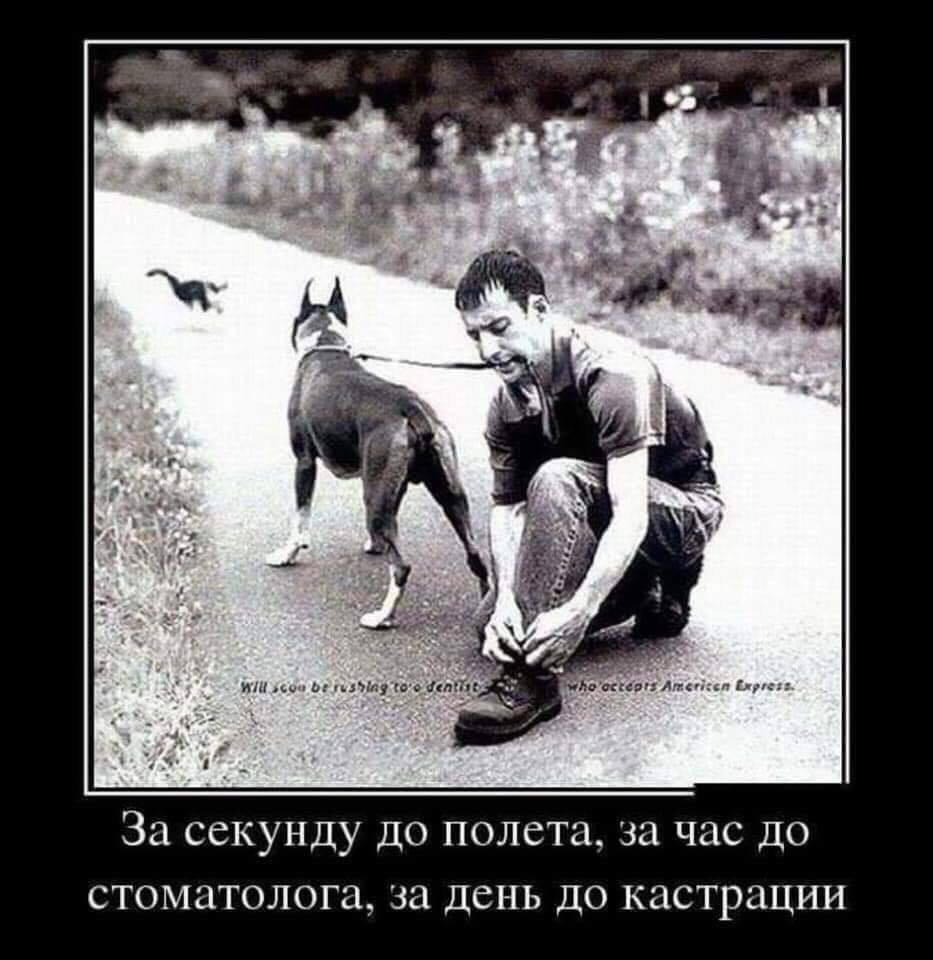 И главное, никто бы и не заметил, но что-то подозрительно долгое время из Кремля не поступало никаких идиотских распоряжений. Арашуков, Абызов... Похоже, сажать будут по алфавиту. А вы на месте судьи отпустили бы человека, за которого поручился Чубайс? Цианистый калий имеет приятный запах горького миндаля. На вкус тоже еще никто не жаловался) У нас с соседом по комнате, так скажем, безмолвные гонки на тему того, кто заснёт первым, потому что мы оба храпим. Почему я пишу этот пост в 3 часа ночи? Потому что сегодня проиграл я... Женщины - они как чипсы, ну или как кола... Вредные, но очень хочется! - Если вы бог из скандинавской мифологии, нажмите «Один»... - Вот видишь, дорогая, чудеса бывают! Сегодня вечер субботы, а я трезв, как стеклышко! - Не хочу тебя расстраивать, но сегодня уже вечер вторника! Сообщение отредактировал НАТКА - 29.3.2019, 9:06 -------------------- Не бывает некрасивых марсианок, бывает мало мутагенного урана.