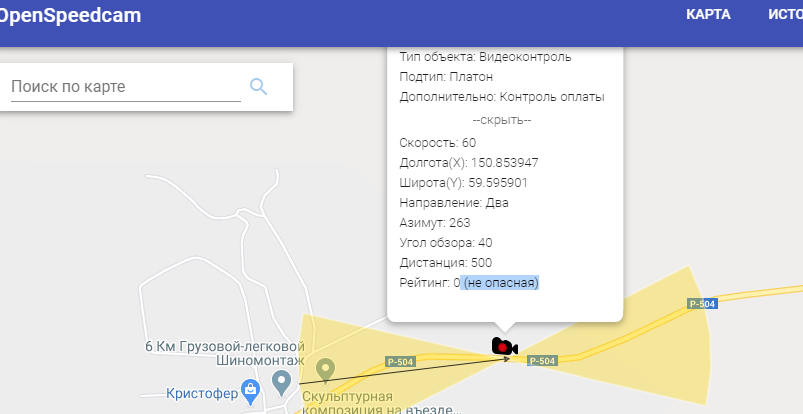 А вот, скажите, что может быть не так в настройках регистратора+радар детектора, что он не реагирует на камеры за стеллой Магадан и после Радиста, камеры в городе фиксирует, хотя, может быть, и не все Совсем недавно обновлял свой Garmin по части камер (точки POI) , так вот почти все наши новые камеры добавились, предупреждение идёт и на те, о которых идет речь. Но на сайте, где идёт информация про камеры ( координаты, система и т.д.), эти камеры считаются "не опасными". Радар-детектор реагирует на радары, а это платёжные ( Платон).