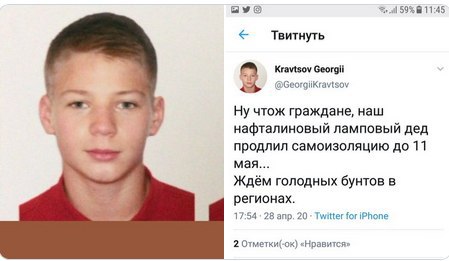 - Группенфюрер, я советский разведчик. - Да хоть американский! Почему без перчаток, позаражать нас всех хотите?! Уважаемые сограждане! Не требуйте денег от государства. Не для того оно их у вас отобрало. - Помню, на 1-ое мы шли по центральной улице с тысячами таких же рядом, плечом к плечу, тесными рядами. А потом, возле наших многоэтажек, в гаражах со всеми соседскими мужиками жарили шашлыки, пили, пели, пожимали крепкие рабочие руки, обнимались... - Ничего себе! Дед, вы реально беспредельщики были! Намордники уже надели. Теперь осталось надеть ошейники. Путин не боится коронавируса, потому что коронавирус боится Путина. Мишустин не заболел. Заразился, официально. Коронавирус тем и хорош, что проходит бессимптомно, как всё в деятельности правительства... Покажут по телевизору как Мишустин, не теряя бодрого мужества, лежит в коридоре, потому что все палаты заняты обычными трудящимися. Путин потребовал от правительства включиться в новую реальность. Премьер-министр России Михаил Мишустин заразился коронавирусом. Никогда поручения президента не выполнялись так быстро. -------------------- Политики – словно подгузники. Их надо почаще менять. И по той же причине.