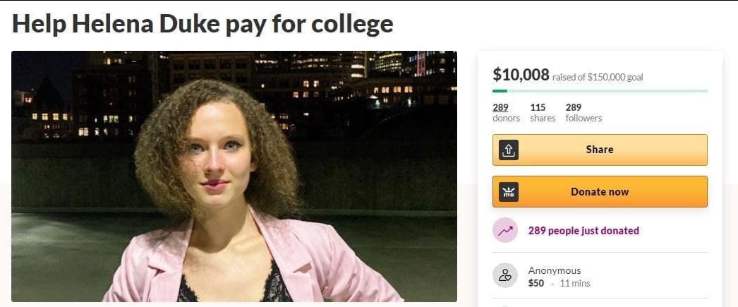 18-летняя Хелена Дьюк, публично сдавшая в ФБР своих маму, дядю и тетю, участвовавших в "штурме Капитолия", на сервисе GoFundMe теперь просит помочь ей деньгами. Ибо совершенно внезапно оказалось, что ей нечем и некому платить за коледж.