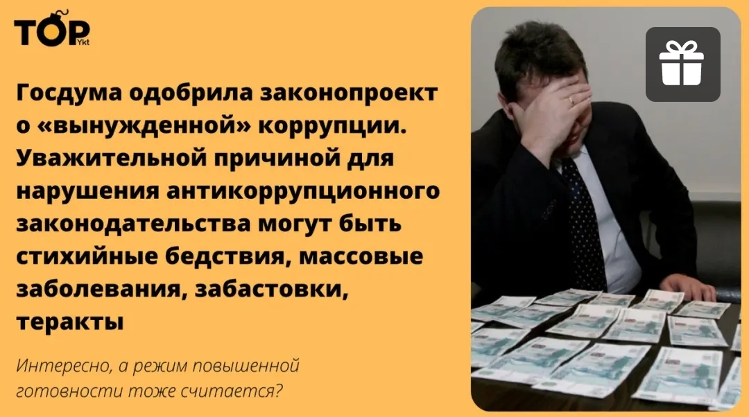 ,,...При этом, говорится в заключении, в проекте необходимо также учитывать, что в условиях, когда органы власти закрыты или переведены на удаленную работу, обязанность уведомить работодателя о невозможности исполнить требования законов с приложением документов, подтверждающих факт наступления обстоятельств непреодолимой силы, тоже может вызвать затруднение. Поэтому комитет предлагает разработать форму уведомления на бумажном носителе, представляемую в случае невозможности исполнить антикоррупционные требования.