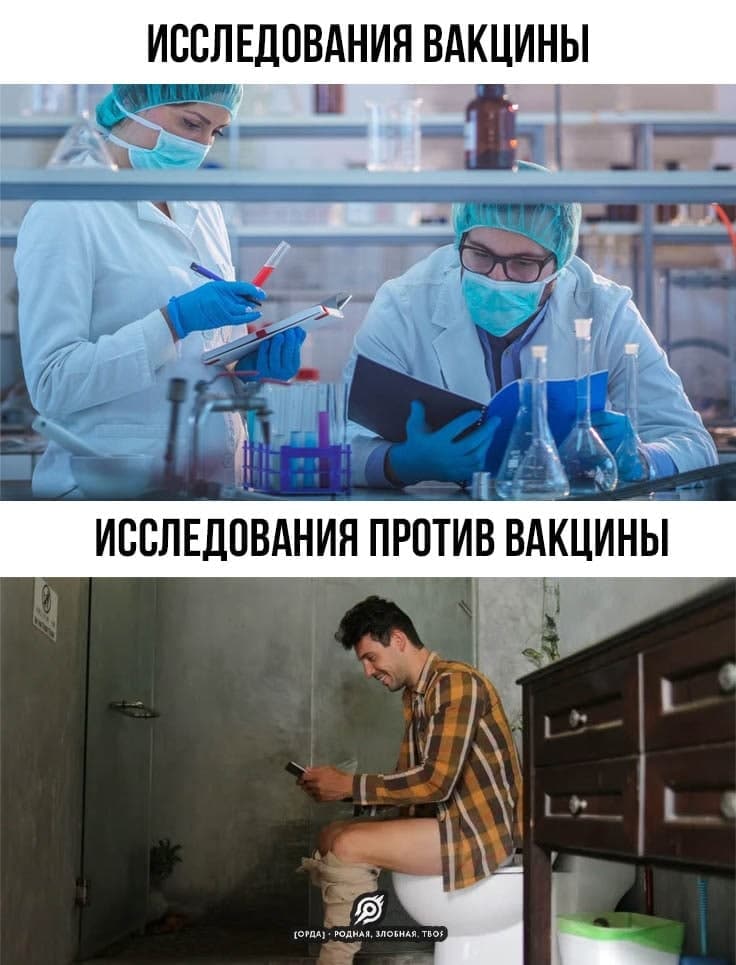 В Российской медицине закончилась эпоха карательной психиатрии и наступила эпоха карательной эпидемиологии. Главный санитарный врач Москвы ОБЯЗАЛА вакцинировать 60% работающих! После заявления Путина о недопустимости принудительного вакцинирования граждан страны, делаем вывод: 60% работающих москвичей - НЕ россияне! Роскомнадзор предложил легализовать просмотр порно для прошедших вакцинацию от коронавируса. Возвращение диалектики: прививки от ковида настолько добровольны, что даже принудительны... Социальная реклама: На плакате наша сборная по футболу и надпись «Вакцинируйся или мы поднимем им гонорар!». Хочешь узнать рейтинг доверия к правительству страны? Не нужны ВЦИОМы, Левады и пр. Просто посмотри на процент вакцинированных! -------------------- Политики – словно подгузники. Их надо почаще менять. И по той же причине.