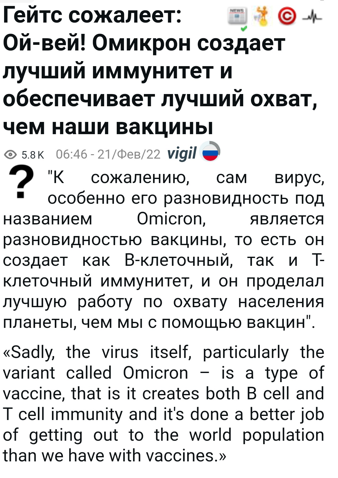 Цитата(kolbasatnik) Проверь антитела. Зачем? Ну засопливил. Полежал, поболел и на работу. Зачем люди бегут ещё антитела смотреть? ![]()