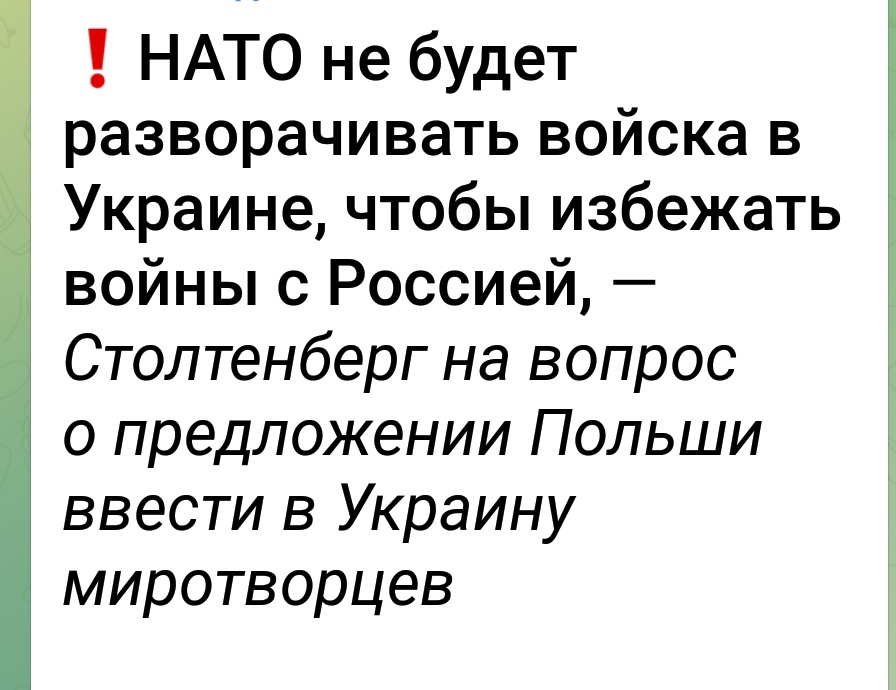 Ее основными задачами будут являться: - охрана гуманитарных коридоров, которые будут организованы в западной части Украины, в том числе, создание над ними бесполезных зон; - охрана гуманитарных грузов (читай военных грузов), которые будут перемещаться по этим коридорам; - создание бесполётной зоны над крупнейшими городами Западной Украины. Сообщается, что пока солдат готовы выделить Дания и Литва. Польша находится в поиске государств, которые согласятся на авантюру. Варшава ждёт одобрения Соединённых Штатов. Пока есть информация, что США относятся к идее скептически. . -------------------- Пейте чай и всё пройдёт......