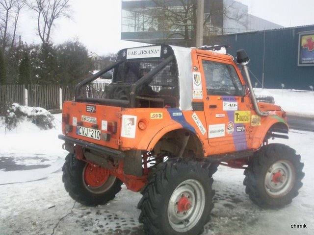 Всё больше и больше а/м марки Сузуки по всему миру используется в качестве платформы для воплощения инжинерных идей, направленных на увеличение проходимости авто. Никакой Эскудо, Джимни и Самурай не смогут конечно же стать полноценными экспидиционниками, но если речь идет о непролазных болотах, глинистой жиже и особенно авто-триала, то тут им нет равных. Вот и эта машина стала жертвой безумных идей своего хозяина, который умудрился внедрить трансмиссию от легендарного (пусть и немецкого) внедорожника Мэрседес-Унимог.