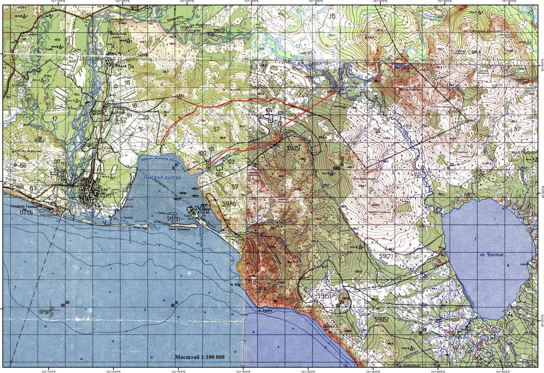 Немного не точно по части зелёной линии-она короче ровно вполовину.Да и маршрут по красным не стреляет,едем иначе немного.